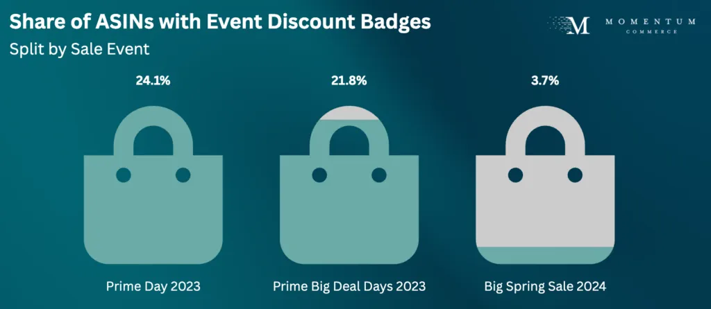 Discounting: The steepest discounts in 2024 were in the Patio Lawn & Garden and Beauty & Personal Care categories. However, even at the low end, Limited Time Discounts were running at more than 10% off on average. However, these discounts weren’t particularly pervasive - just 3.7% of products had a discount badge over the 2024 Big Spring Sale event compared to more than 20% during the prior Prime Day and October Big Deal Days events.