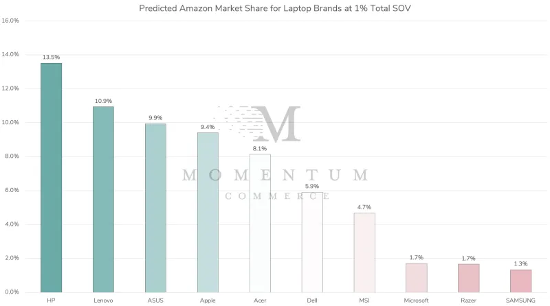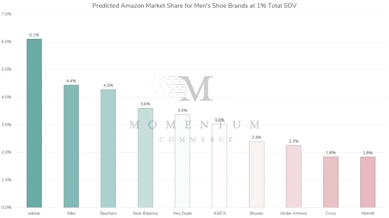 Momentum Commerce analyzed Amazon market share along with paid, organic, and total share of voice data across more than 50 categories between June 2021 and December 2022. A regression analysis was then performed across these data sets, incorporating total market size, brand assortment, and branded search term frequency on category search terms.