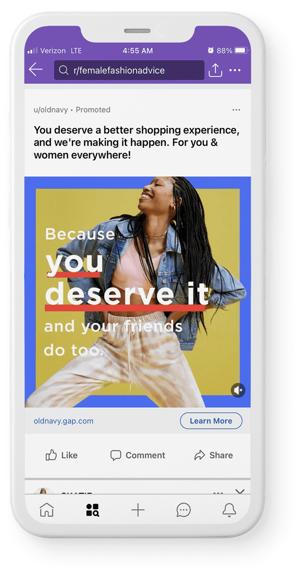 Old Navy was to launch the initiative with an open letter to “women everywhere,” so our strategy was to ensure that our target audience experienced BODEQUALITY at every touchpoint. Our comprehensive plan would layer full-funnel activations — awareness, consideration, conversion, and community — to introduce the movement, educate consumers on the full range of sizes and styles, tie products to promotion, and then amplify consumer voices championing the movement.